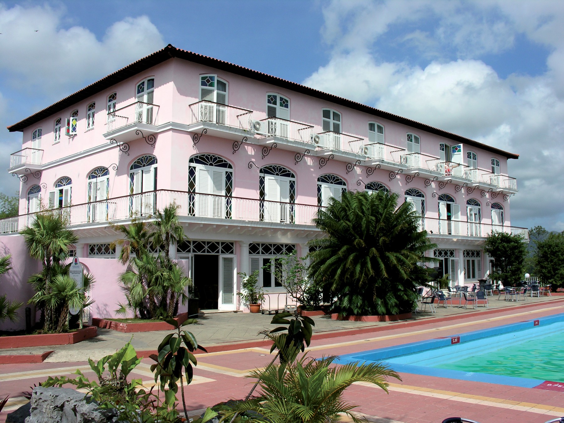 Découvrez le charme rustique de l'hôtel situé à seulement 2 km du pittoresque village de Viñales, offrant une vue imprenable sur la vallée. L'établissement comprend 70 chambres réparties entre des bâtiments de trois étages et des bungalows confortables. Profitez d'installations telles qu'une piscine extérieure, un restaurant, un bar et des boutiques. Des services additionnels comme le bureau d'excursions et les massages sont disponibles moyennant un supplément. Chaque chambre offre un décor simple avec des commodités modernes, incluant un balcon ou une terrasse, climatisation, TV, et plus encore.