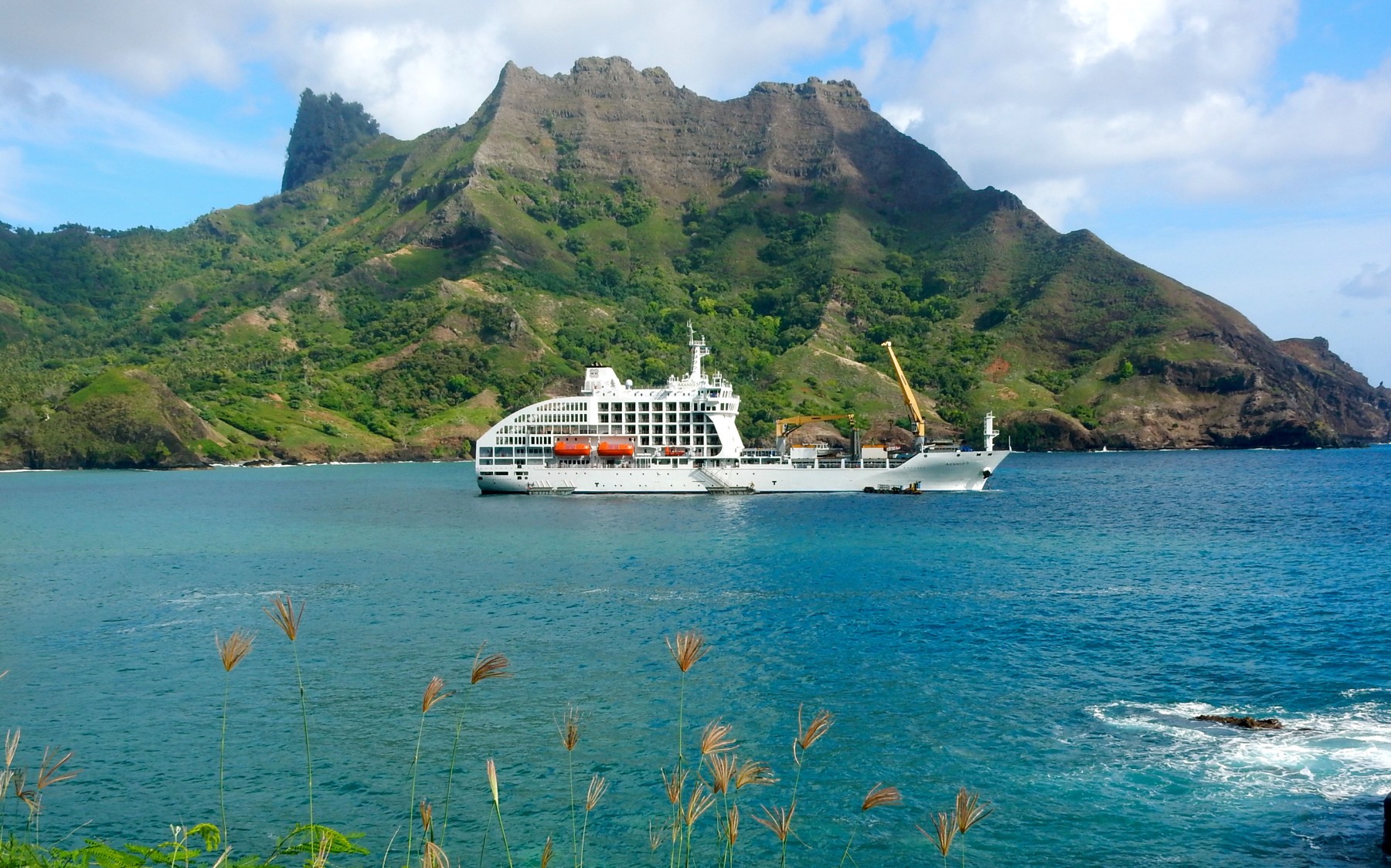 Journée en mer pour profiter du pont piscine et du salon climatisé. Conférences sur la culture et l’histoire des Marquises. Animation polynésienne avec chants, ukulélés, guitares et tambours. Passage à l’heure locale des Marquises.