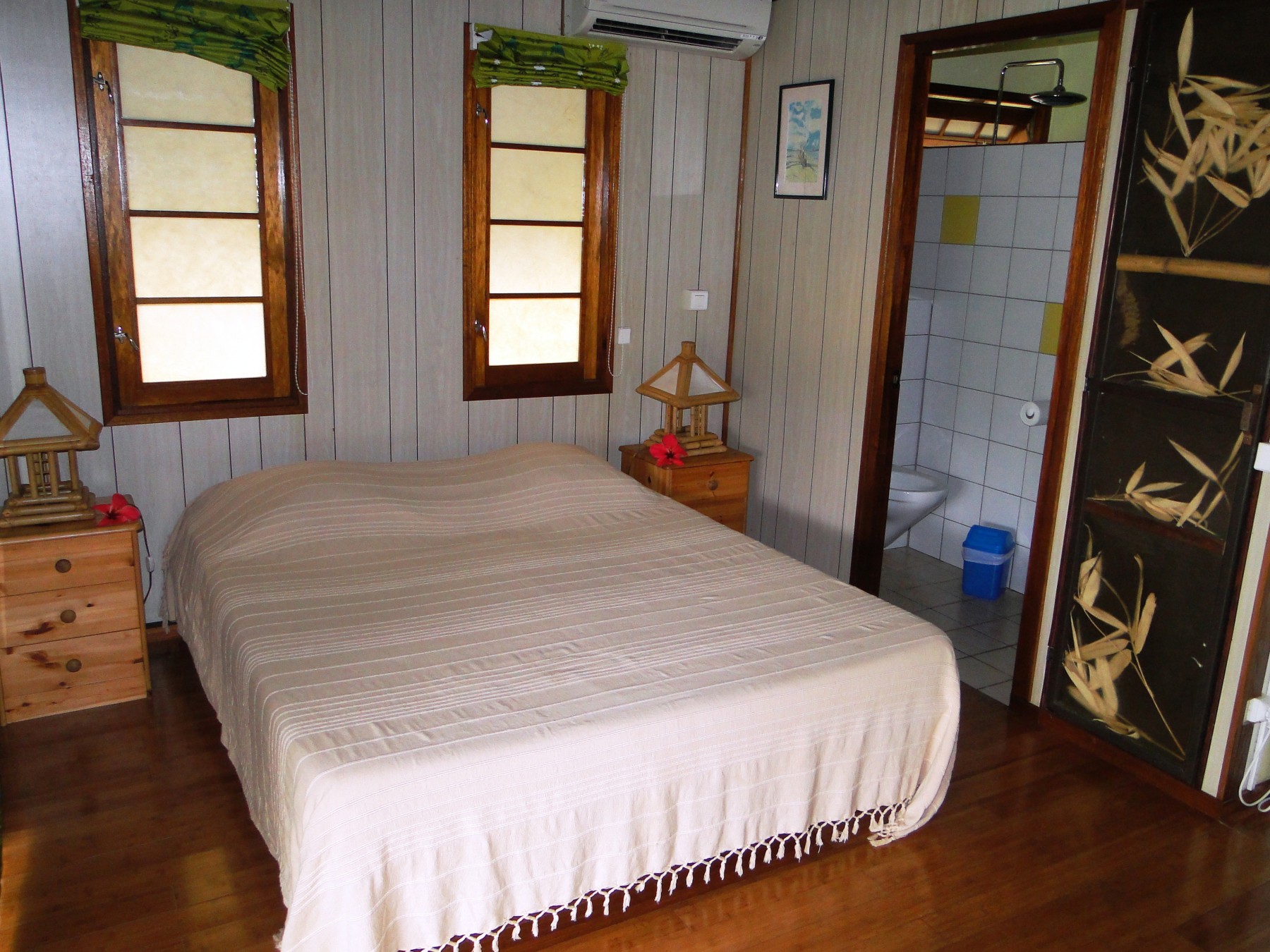 De tradition polynésienne, les logements sont simplement aménagés et tous équipés de terrasse, climatisation, ventilateur, salle de douche/wc, kitchenette équipée, TV.